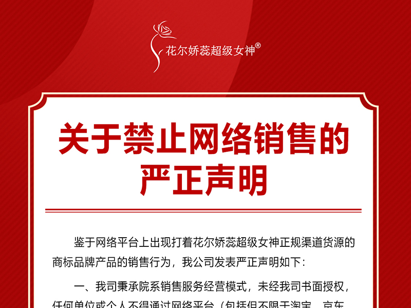 鉴于网络平台上出现打着花尔娇蕊超级女神正规渠道货源的商标品牌产品的销售行为,我公司发表严正声明如下: